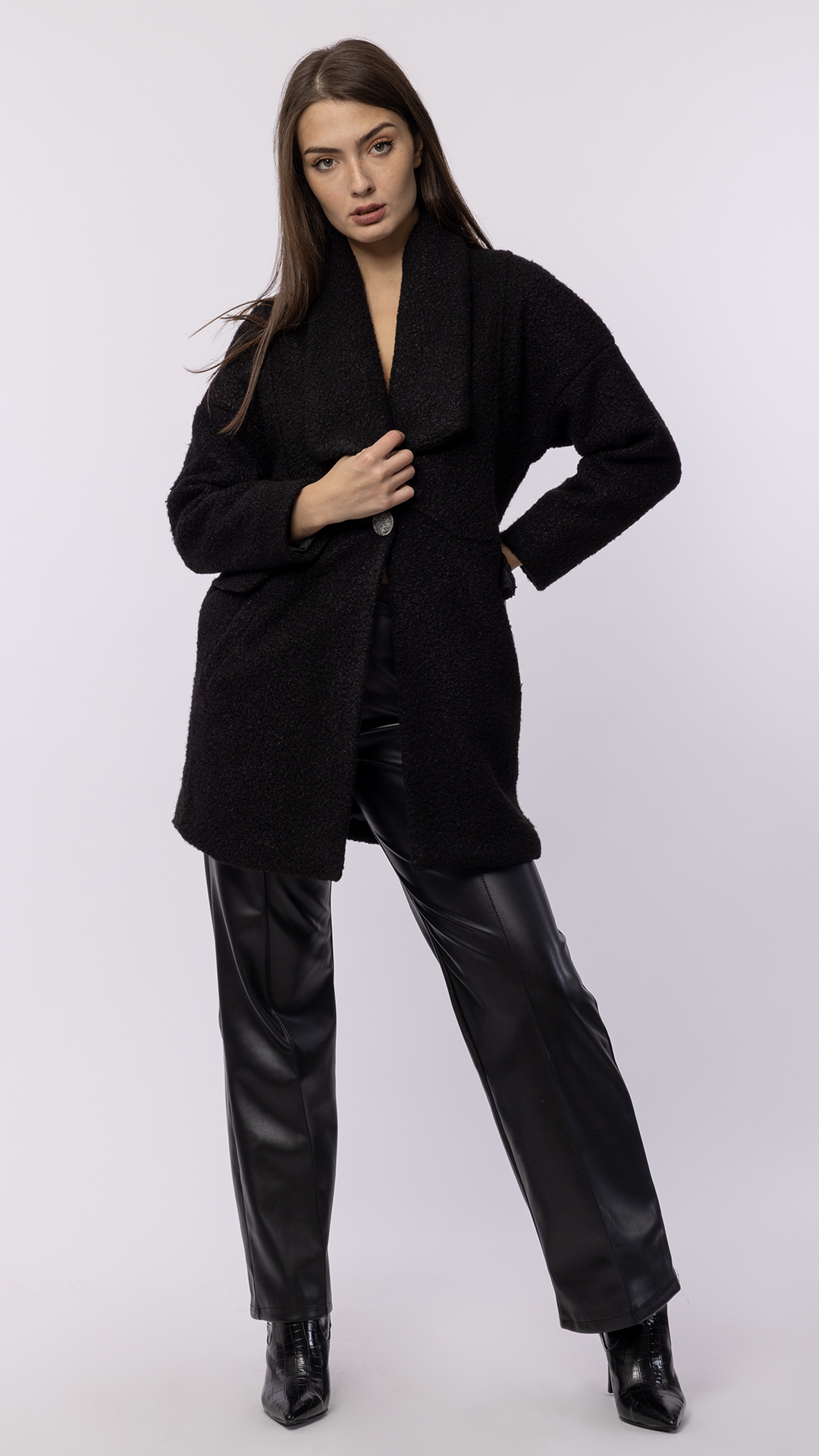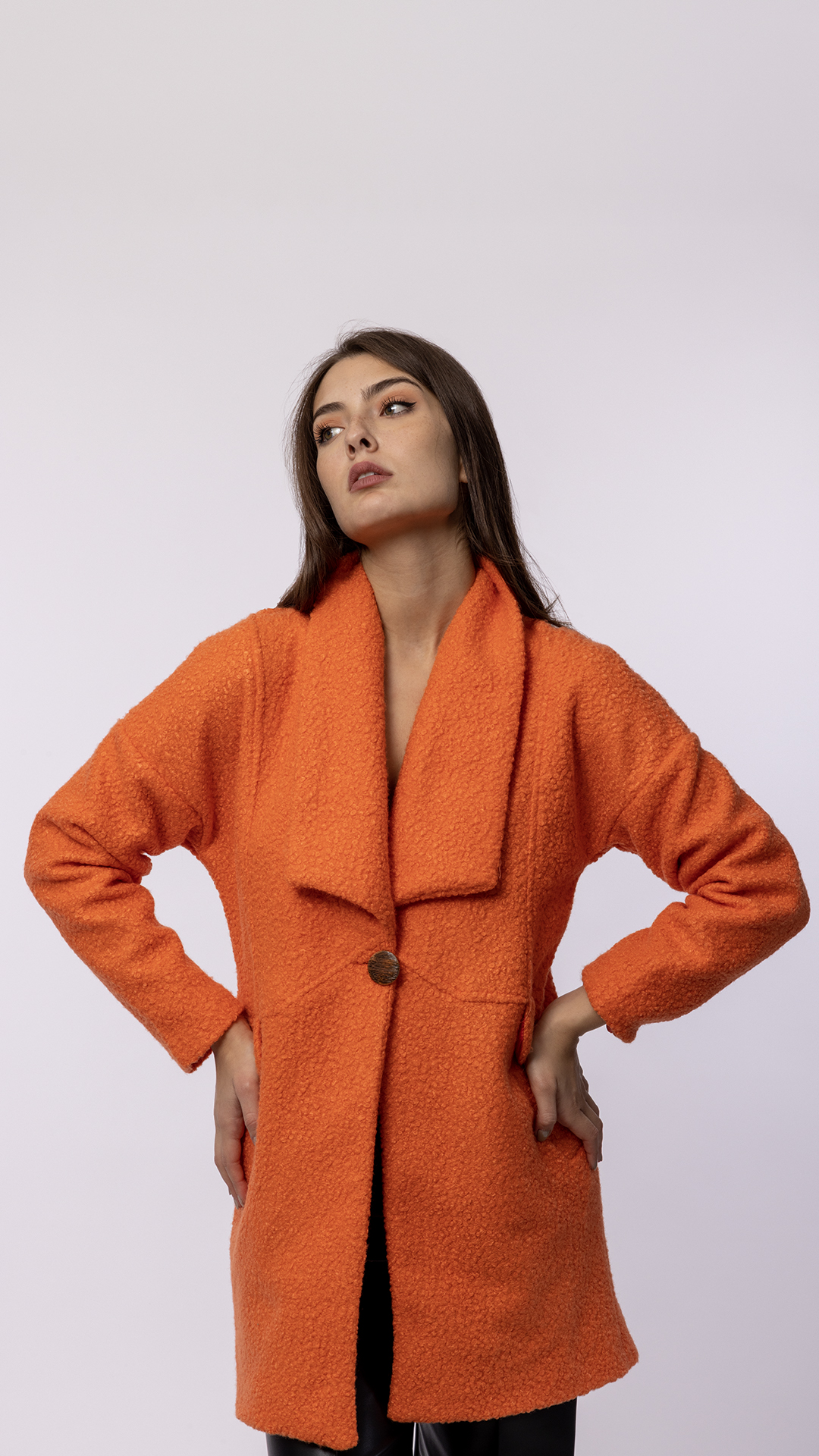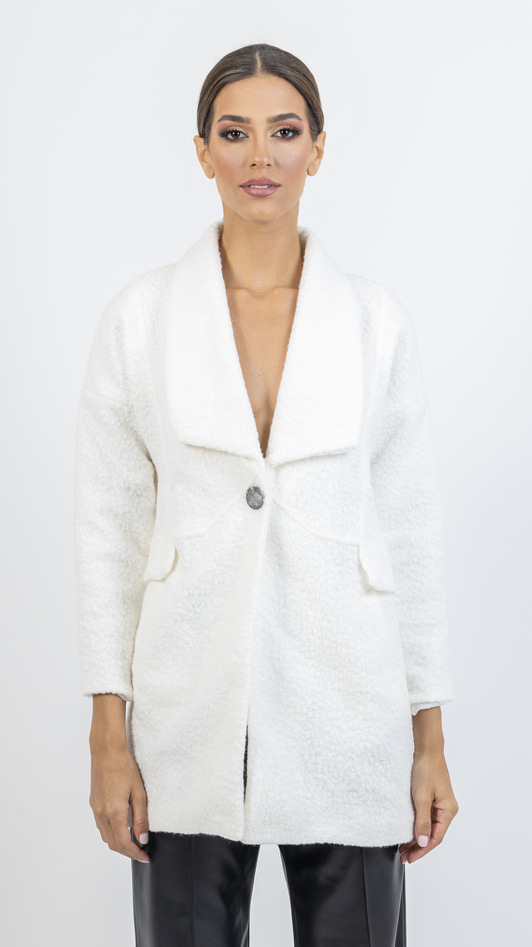 Mini length coat.