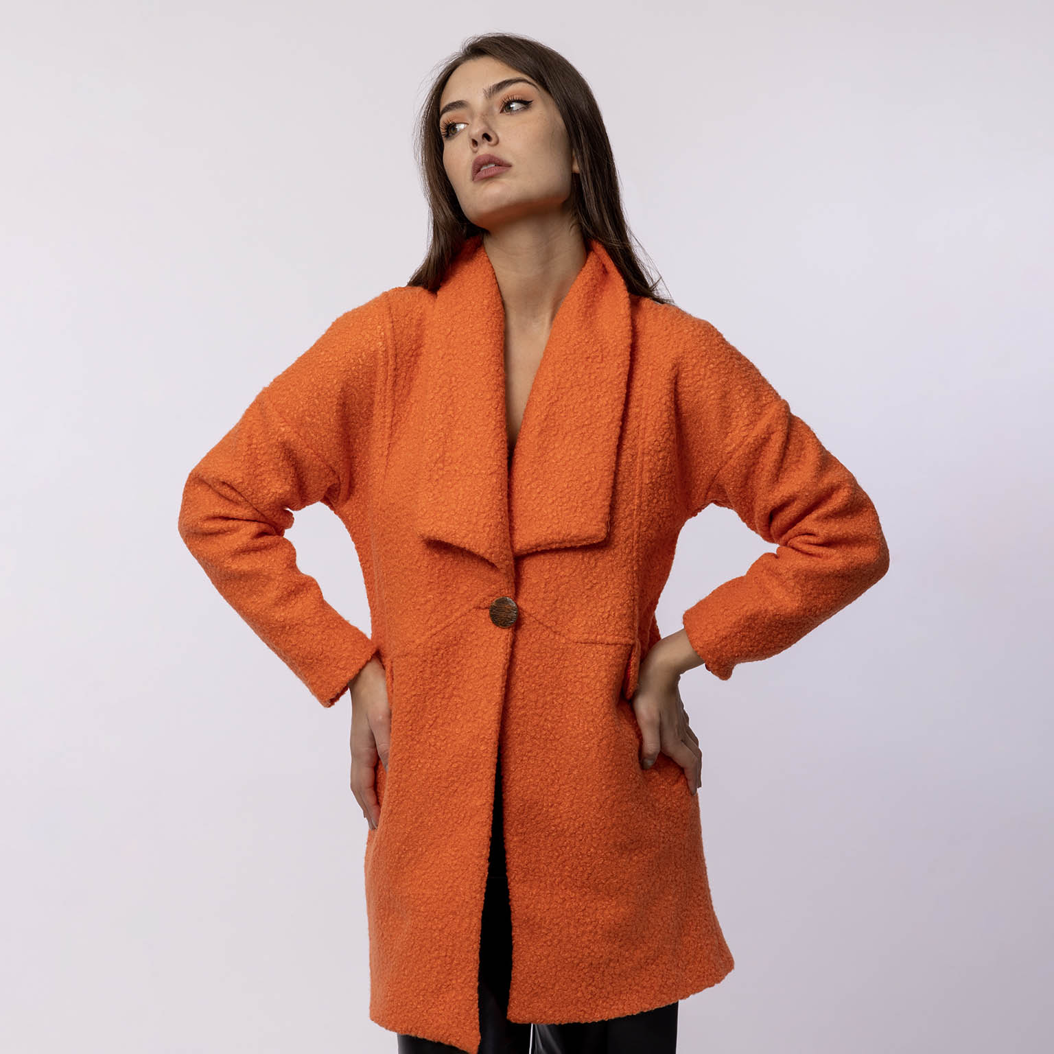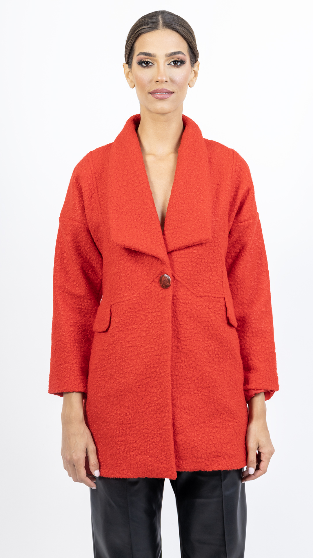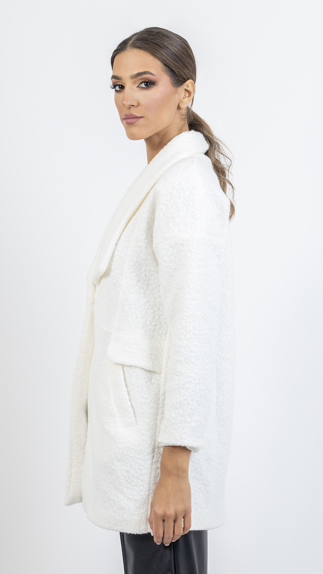 Mini length coat.